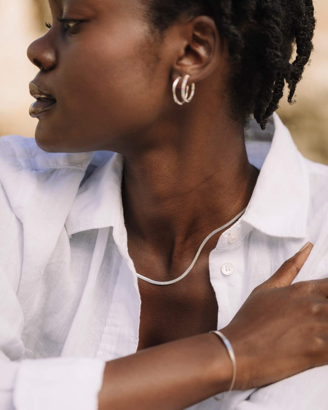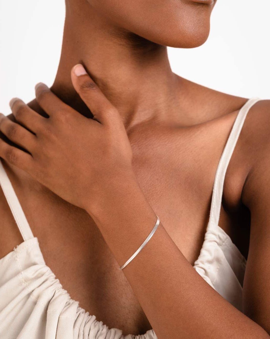 This timeless 925 Sterling Silver Snake Chain Bracelet exudes sophistication. With its clean sterling silver and classic design, it's perfect for dressing up (or down) any outfit for every occasion.