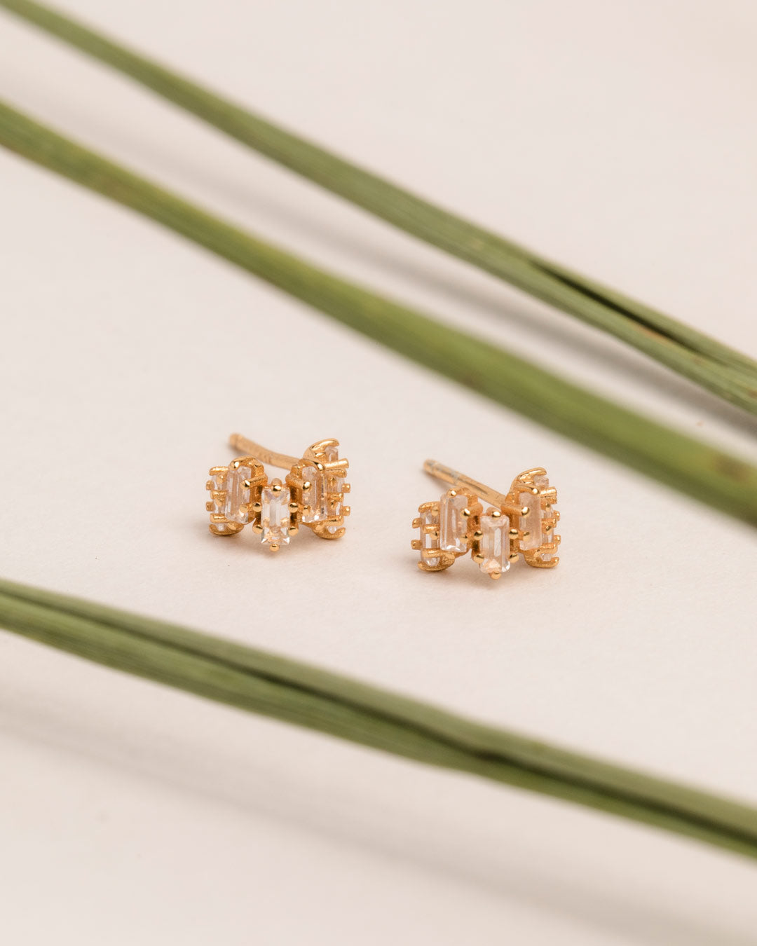 These 18ct gold plated earrings feature flawless clear baguette stack crystals, making them dainty and feminine. Perfect for special occasions, they'll bring a touch of elegance and refinement.