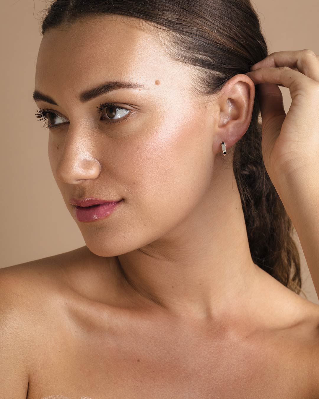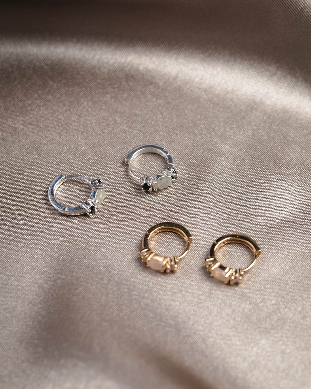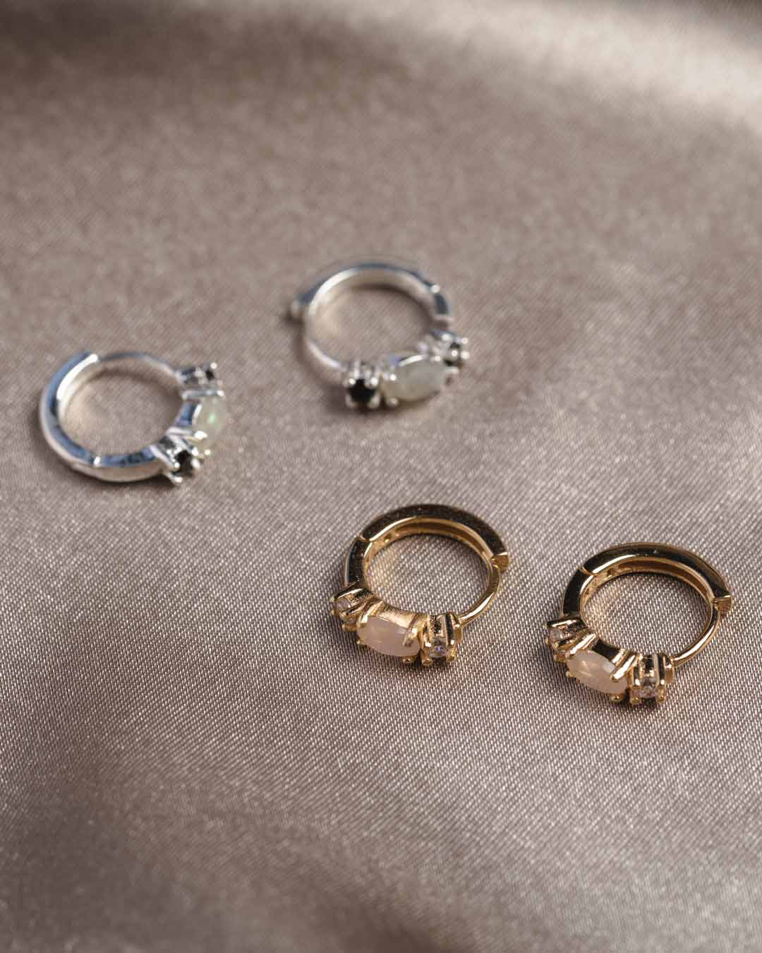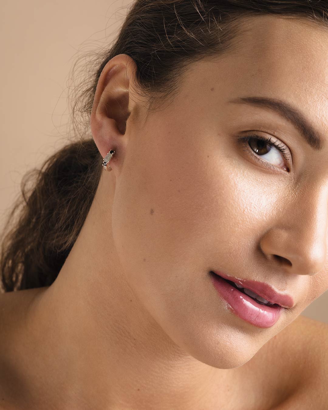 Complete your look with the Labradorite Detail Huggie Earrings. Its simple yet elegant design makes it a must-have to your accessory collection.