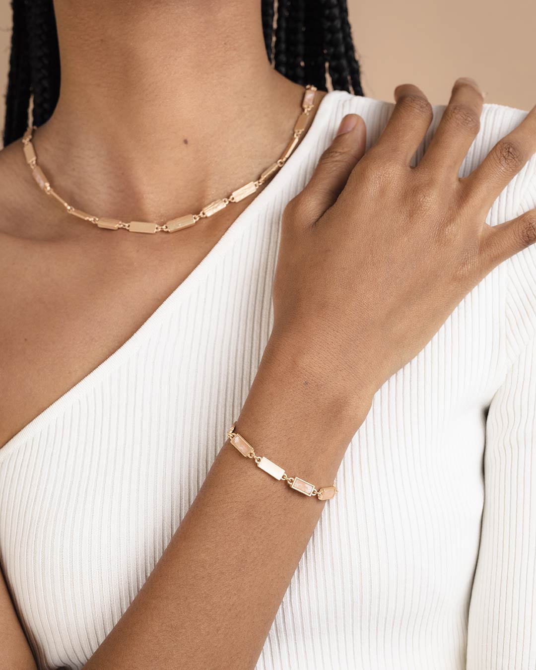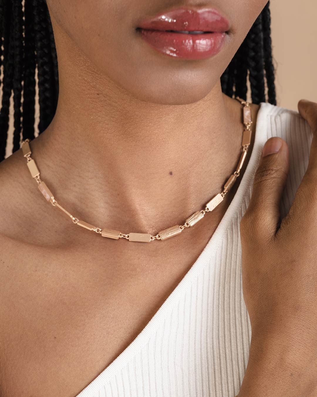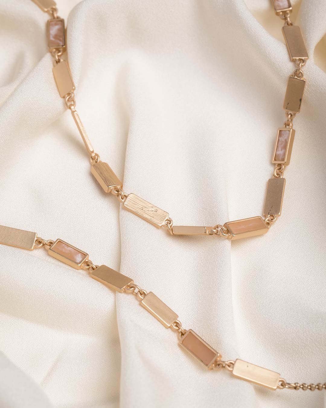 A marriage of soft gold and natural opal create a soft elegant femme necklace.