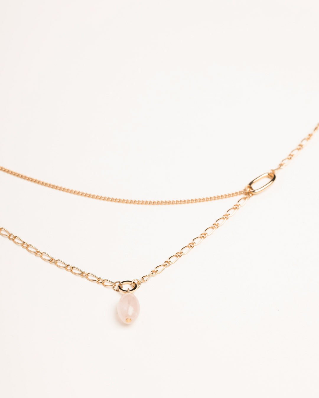 Elevate your everyday style with our Natural Rose Quartz Pendant Multi Strand Necklace. The rose quartz pendant adds a touch of elegance while the multi strand design adds depth.
