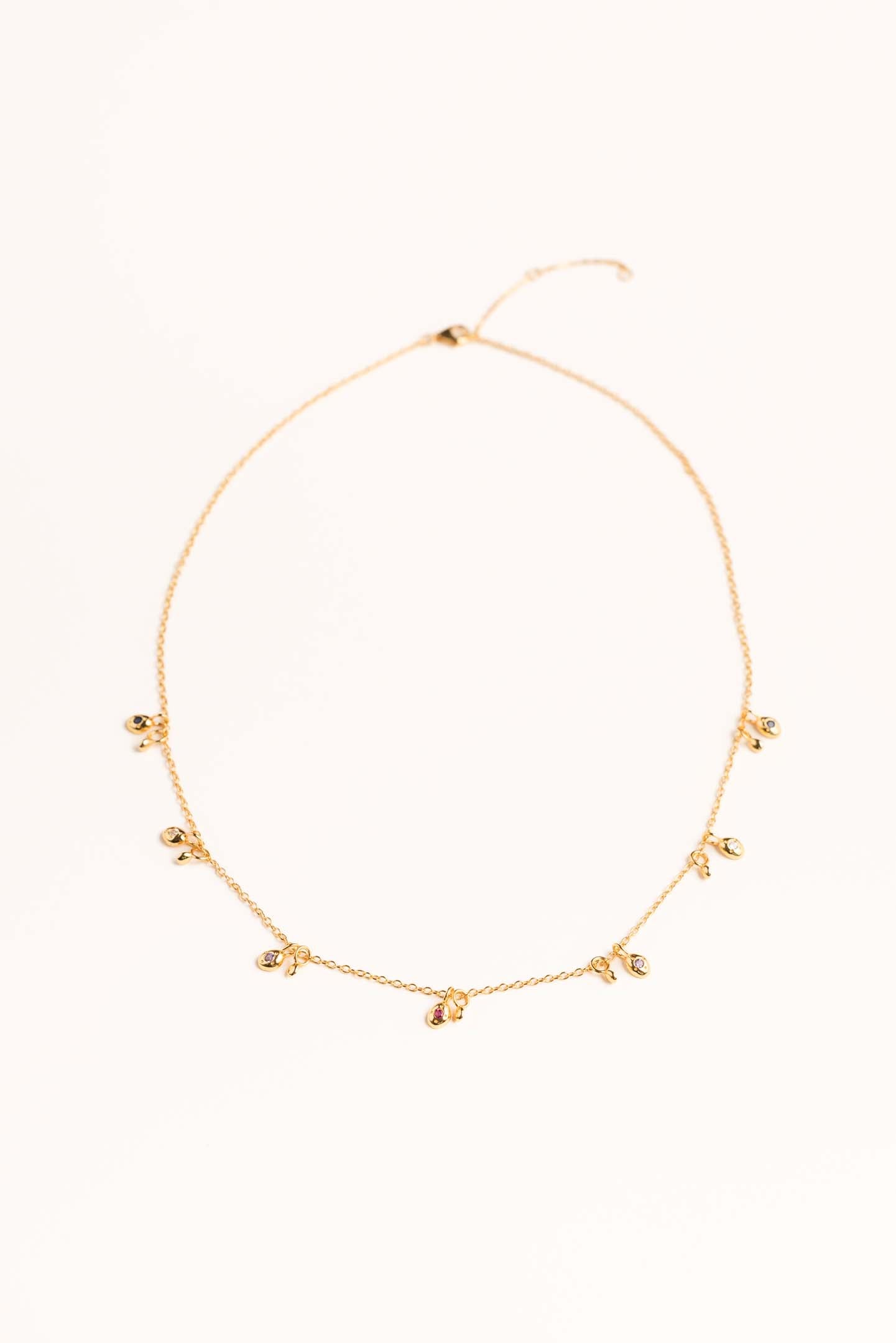 Get ready to turn heads with this cute and subtle 18ct Gold Plated Multi Colour Charm Necklace. Perfect for adding a playful touch to any outfit, this necklace is sure to be a conversation starter.