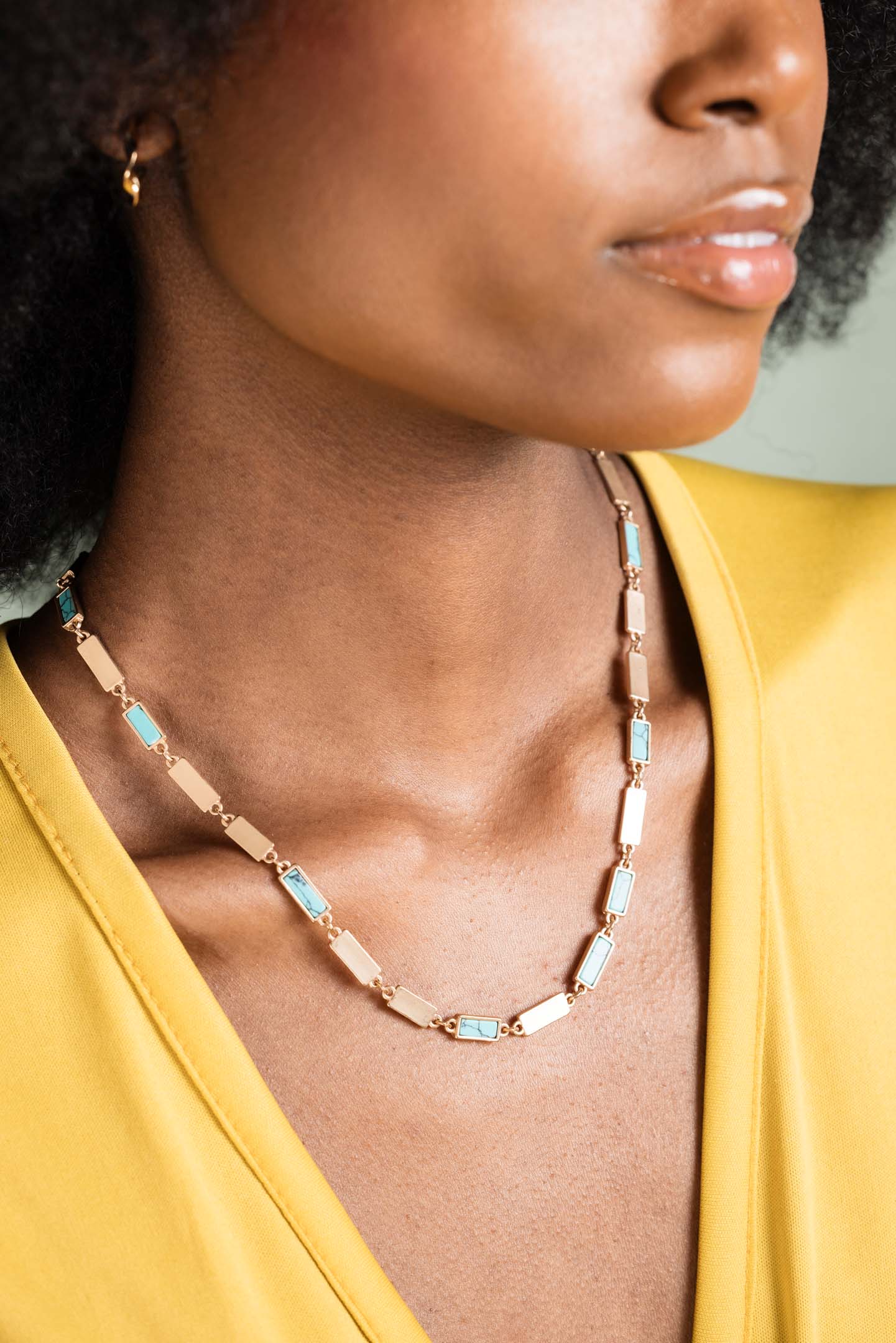 Make a statement with our one-of-a-kind Natural Turquoise Rectangle Necklace! It's perfect for adding a pop of color and personality to any outfit.