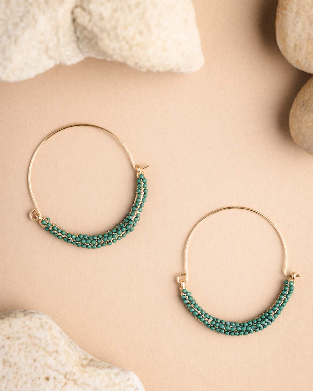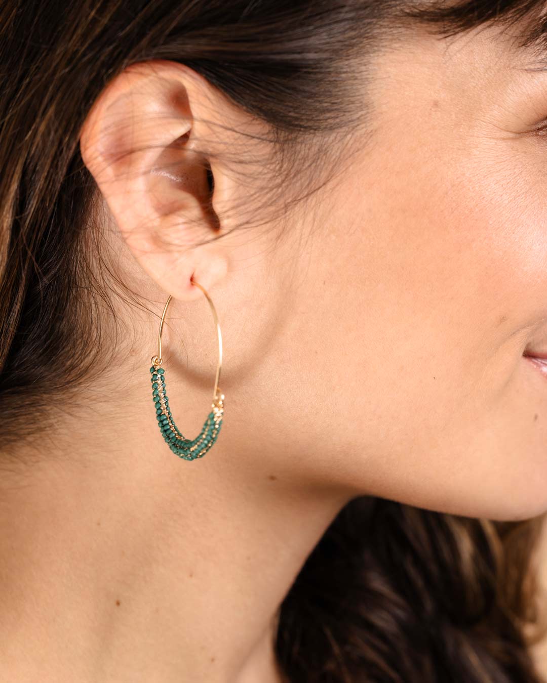 Its understated design is chic and elegant and will add that final touch of glam to your look. These Emerald Green Bead Encrusted earrings are a standout piece.