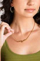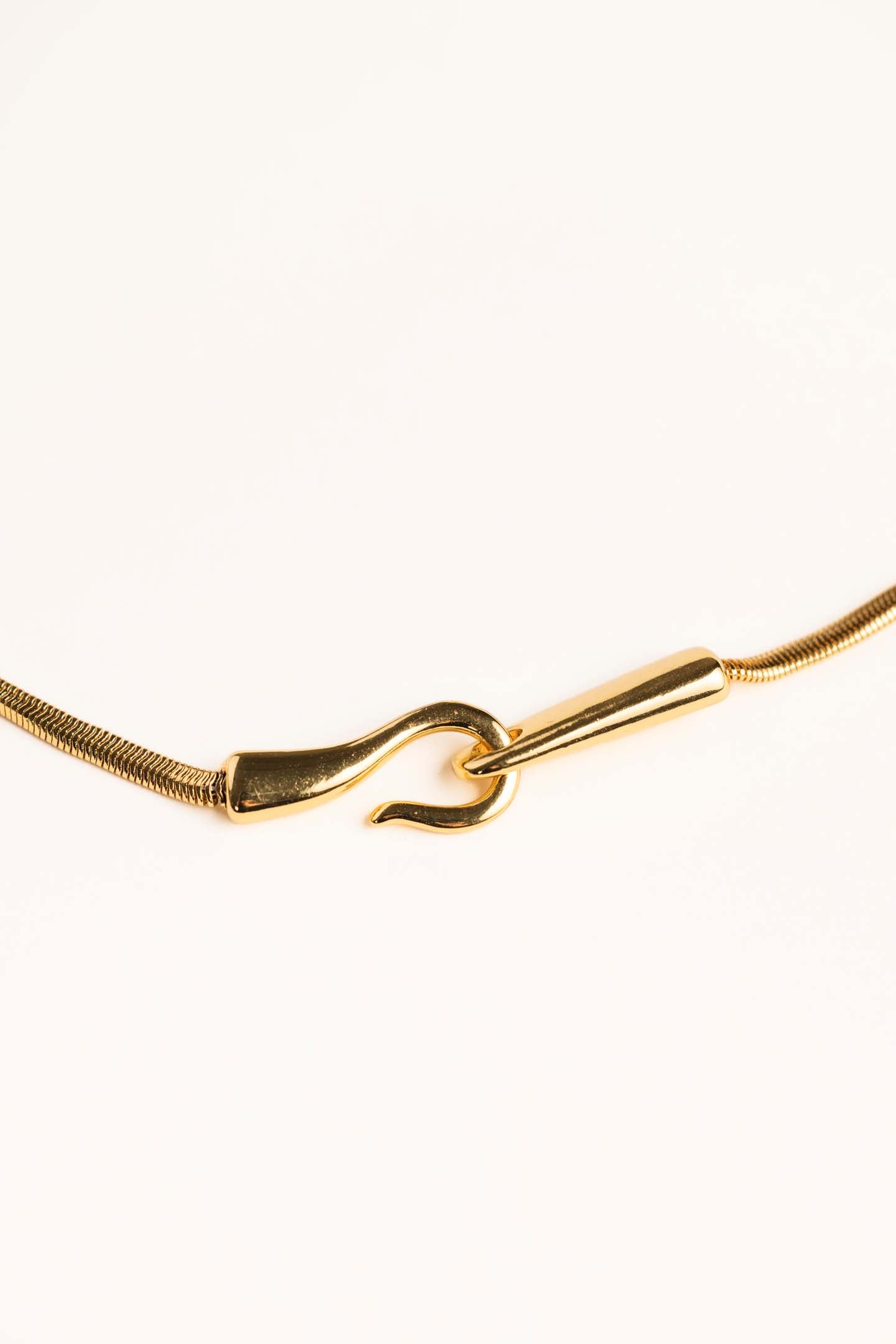 Add a touch of elegance and sophistication to your outfit with our Gold Hook Necklace. Elevate your style with our Gold Hook Necklace.