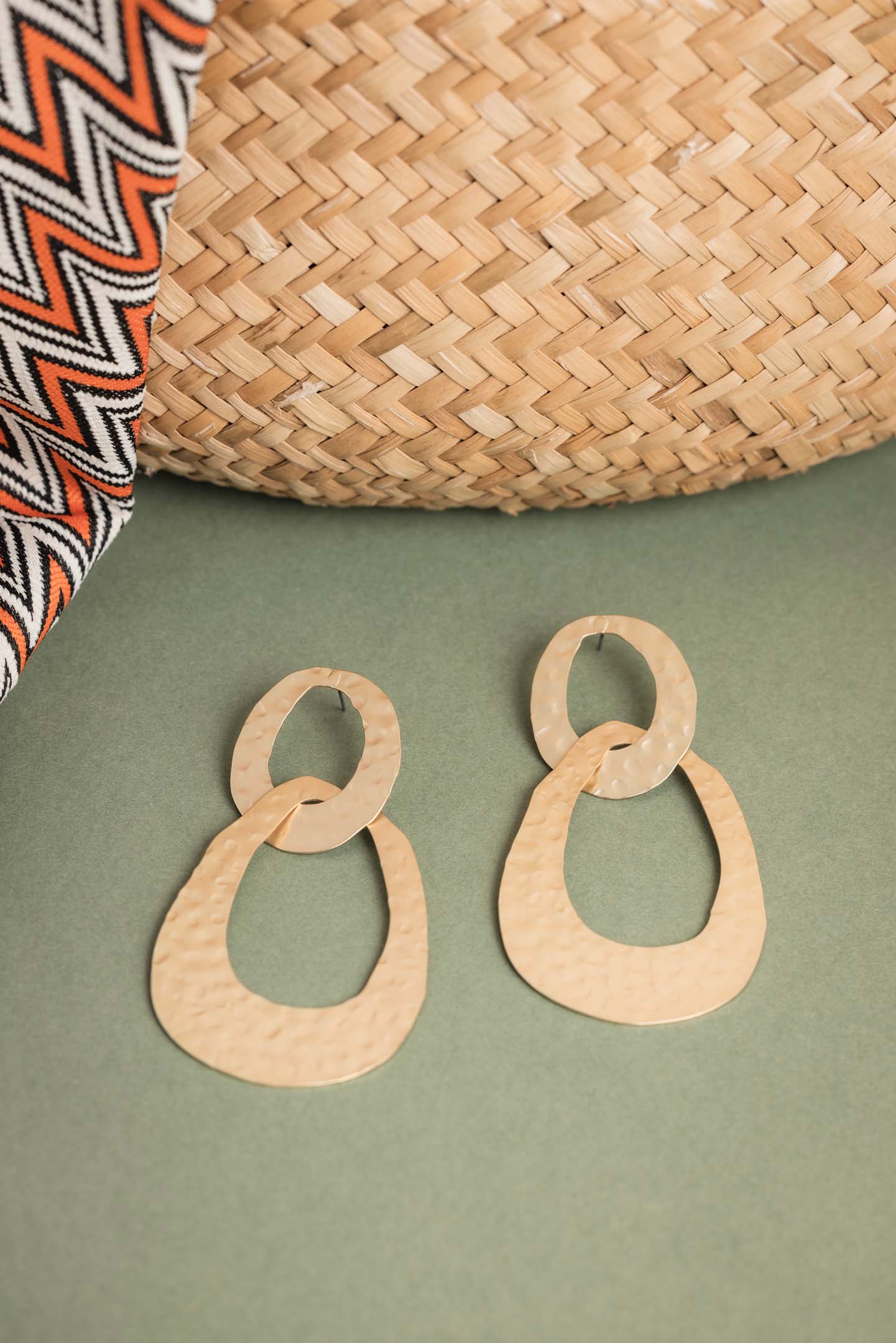 These beautifully crafted earrings feature a unique beaten design that will make a statement wherever you go. Perfect for any occasion, these earrings will surely elevate your style and bring out your playful side.