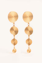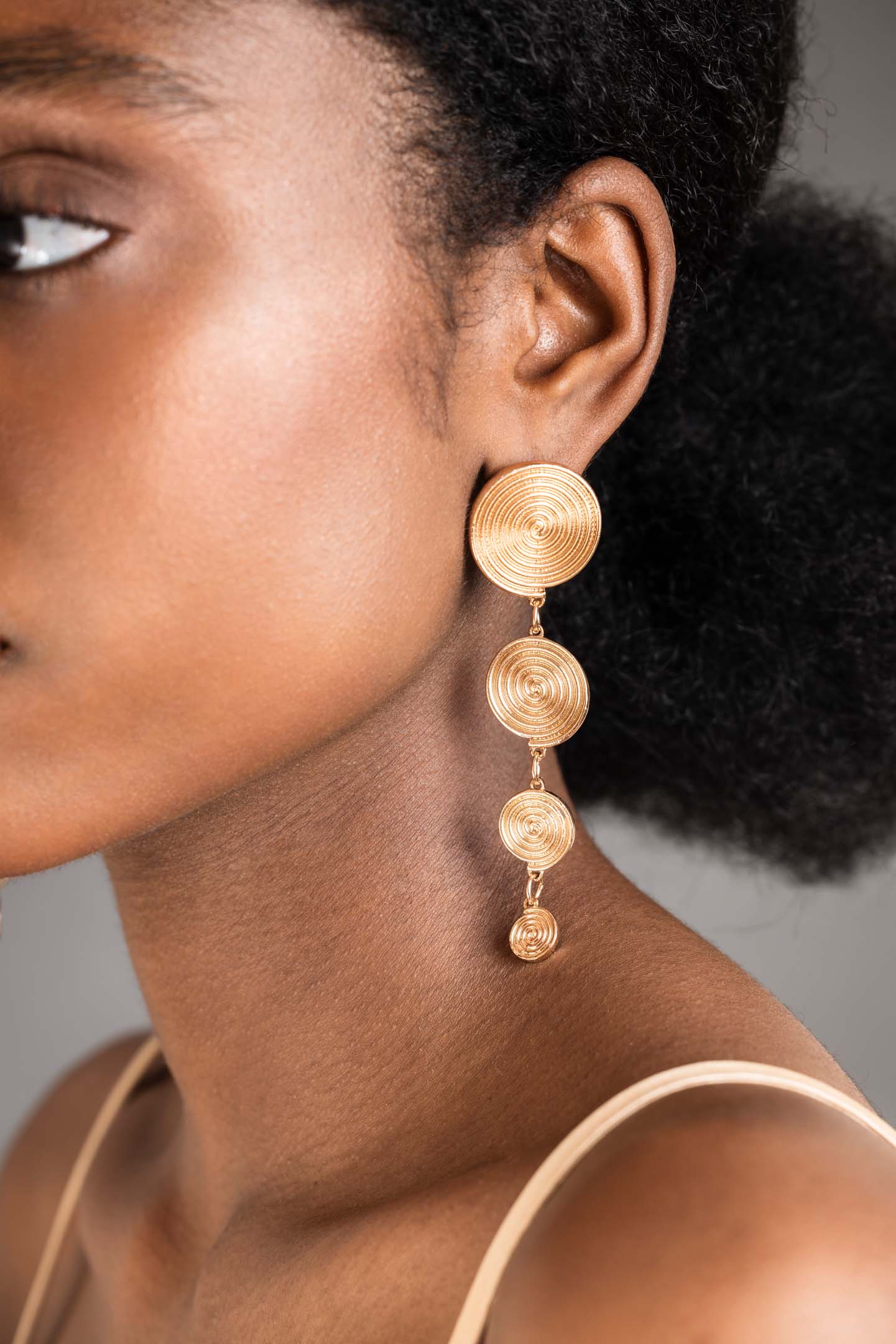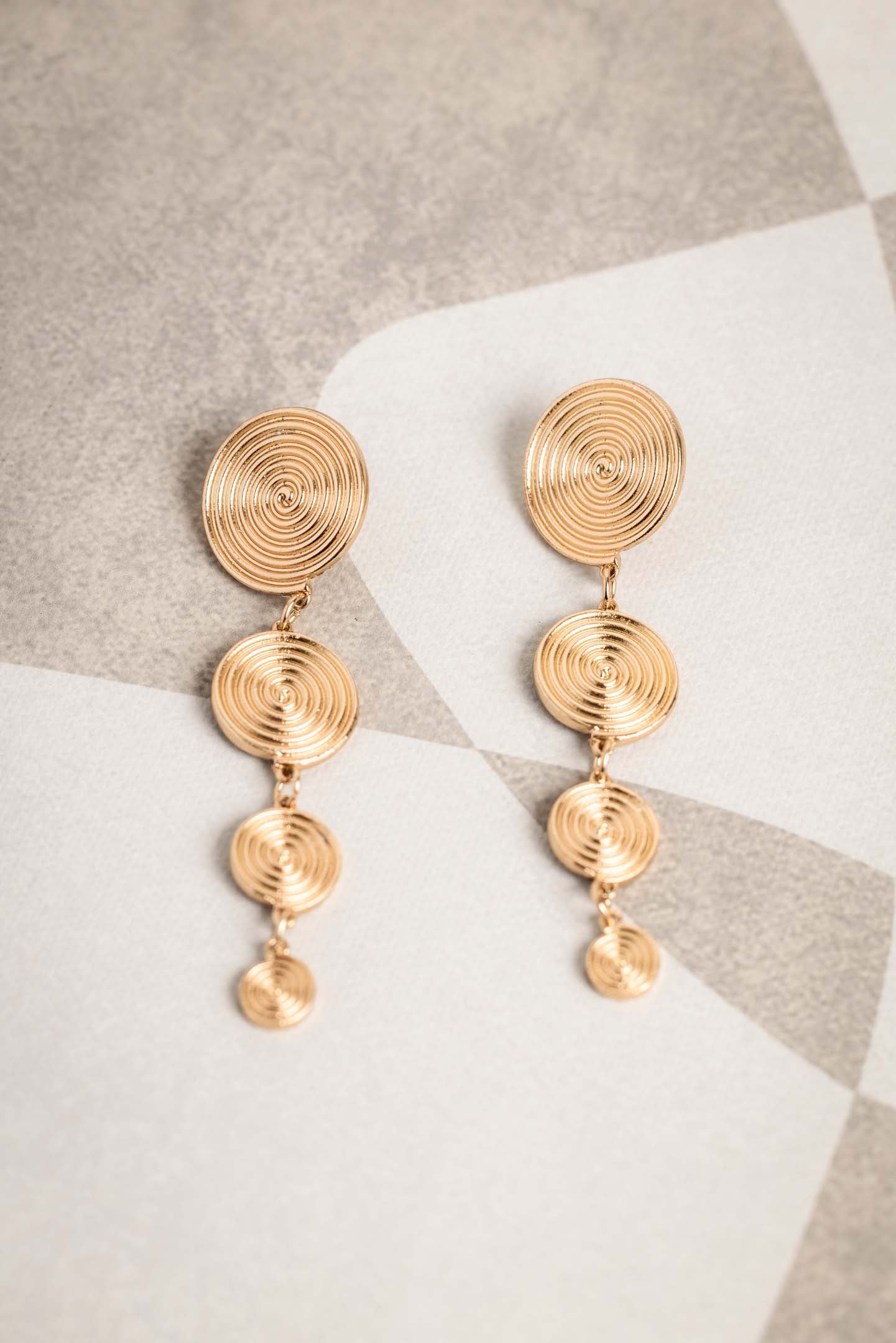 The intricate spiral design adds a unique element to these classic, gold-tone earrings. Perfect for a night out or everyday wear, these earrings are sure to make a statement.