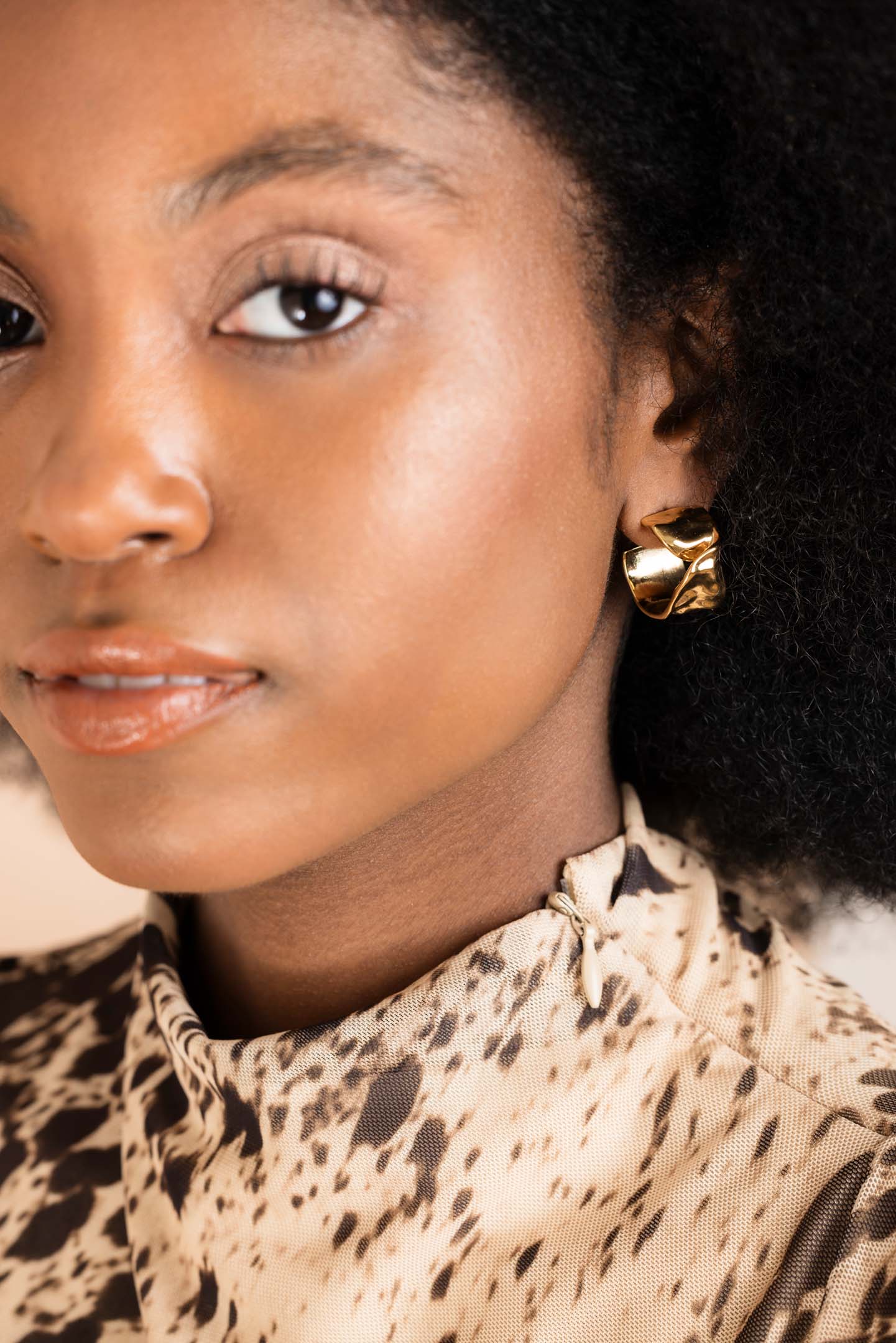 These hoops offer a unique twist design for a playful yet elegant look. Perfect for any occasion, these hoops are sure to elevate your style.
