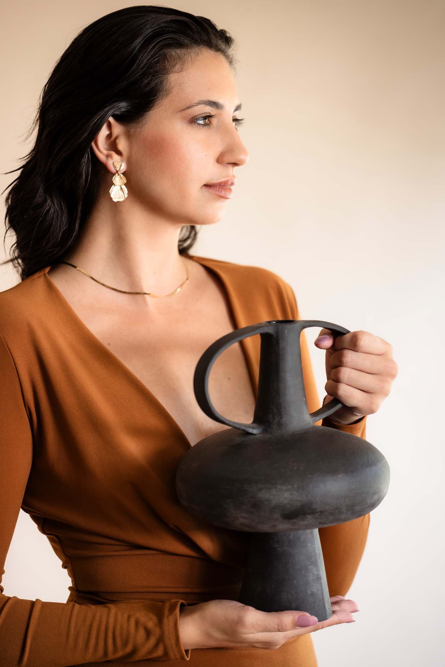 Make a statement and add a playful twist to any outfit with these earrings. The seperate sections come to life with movement.