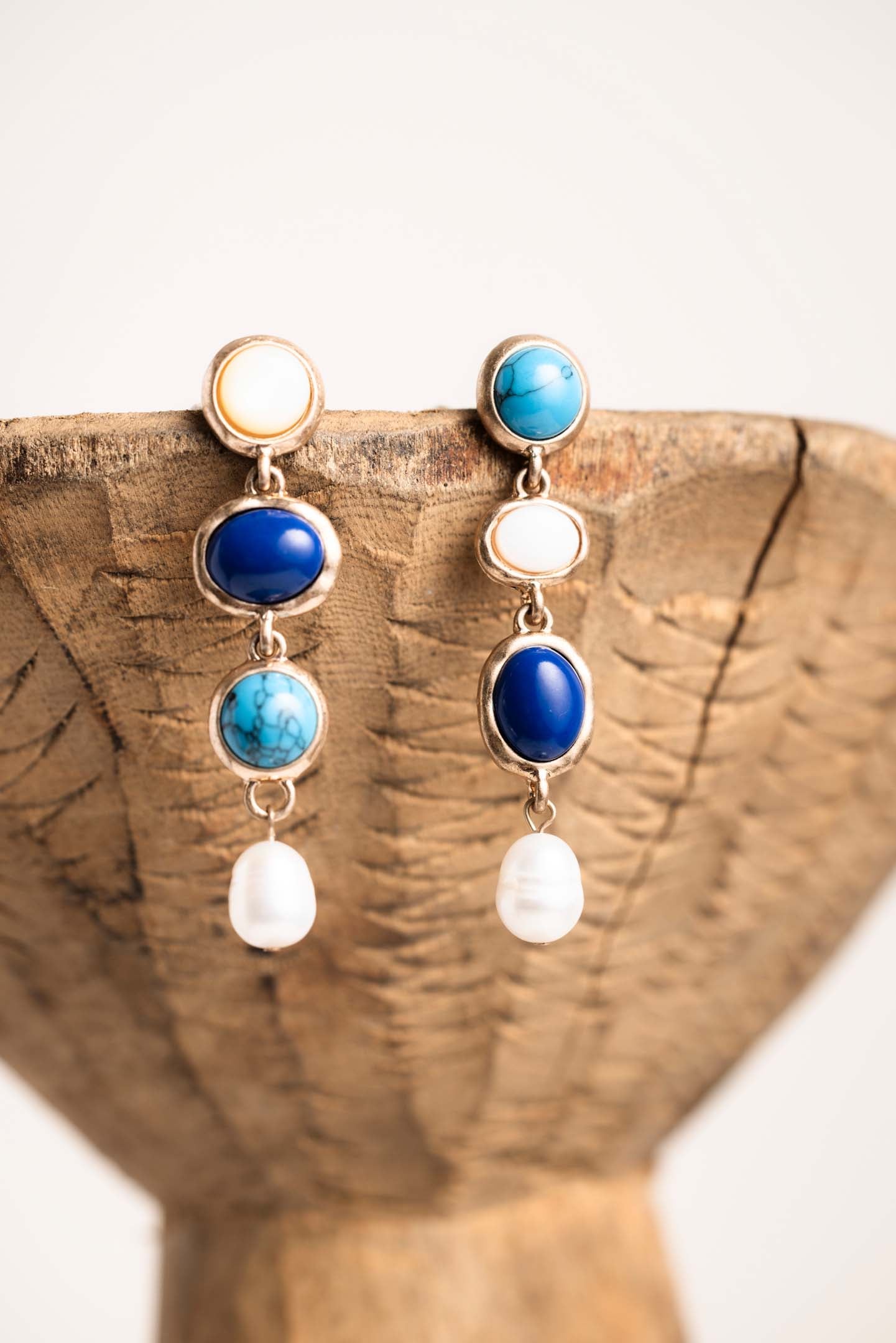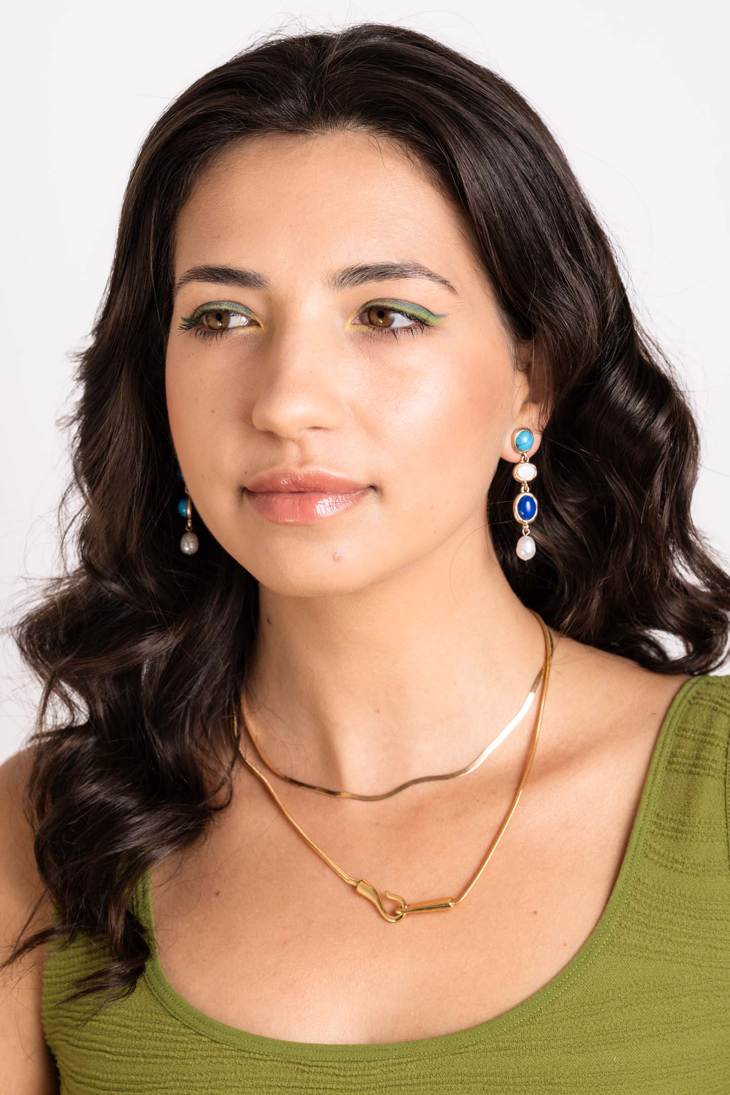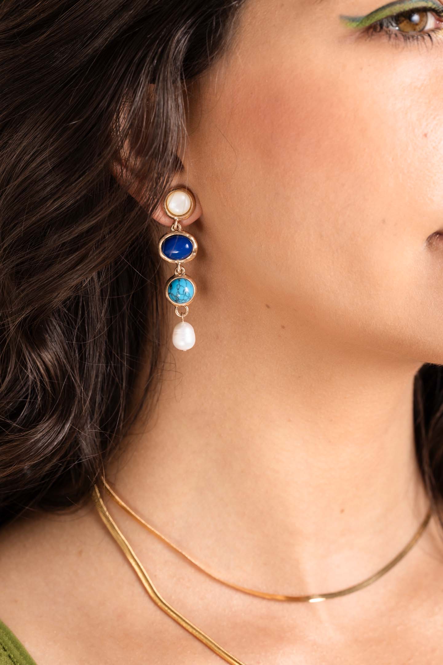 Add a touch of elegance and playfulness to your wardrobe with our Genuine Freshwater Pearl & Natural Stone Drop Earrings.