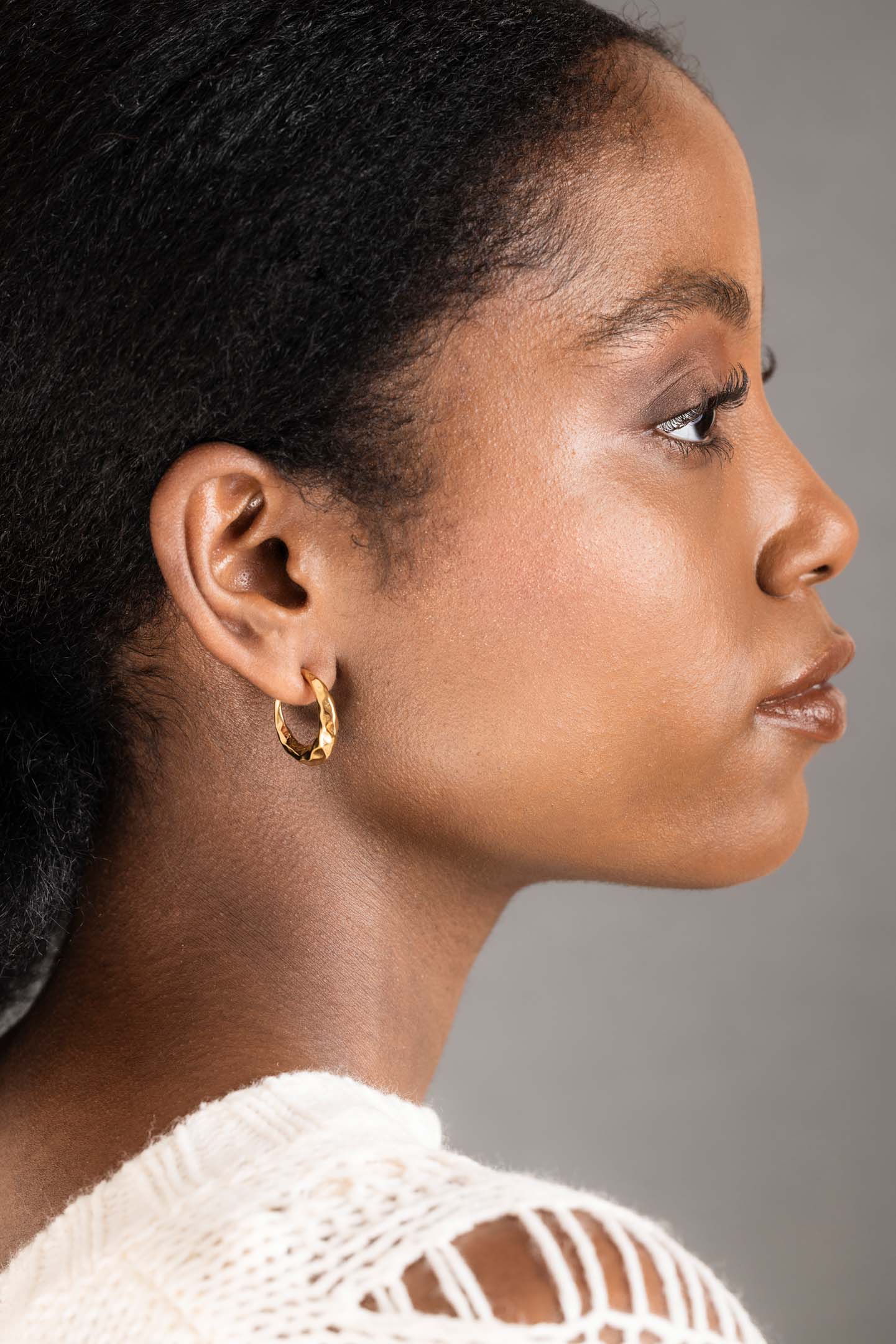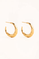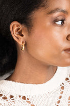 These stunning earrings feature a thick curved design in shiny gold, adding a touch of elegance and style to any outfit. Make a statement and stand out with these must-haves!