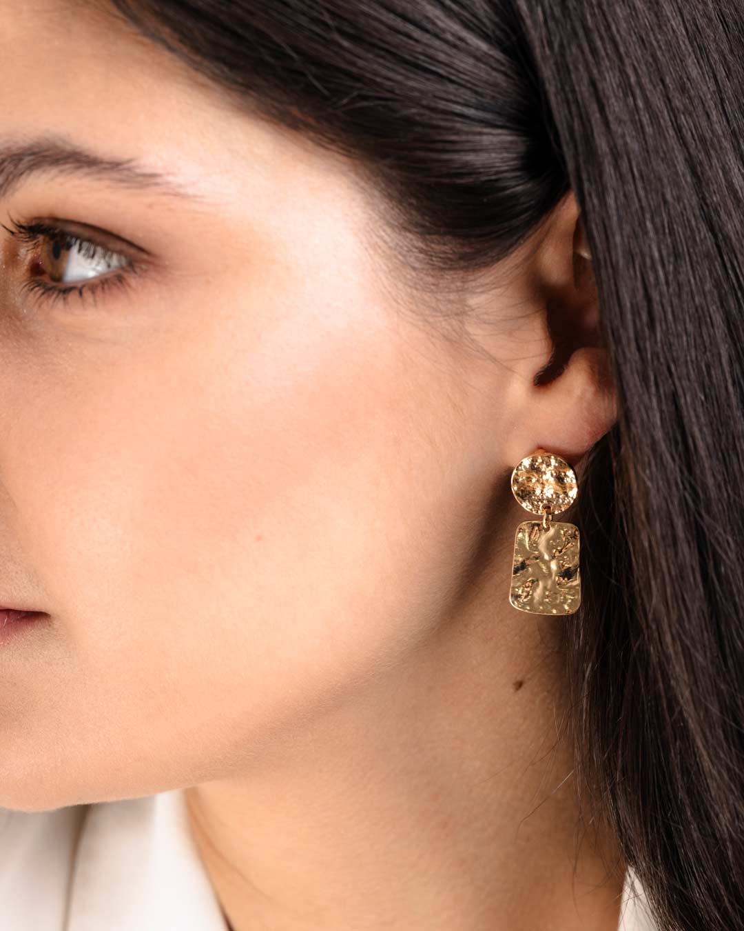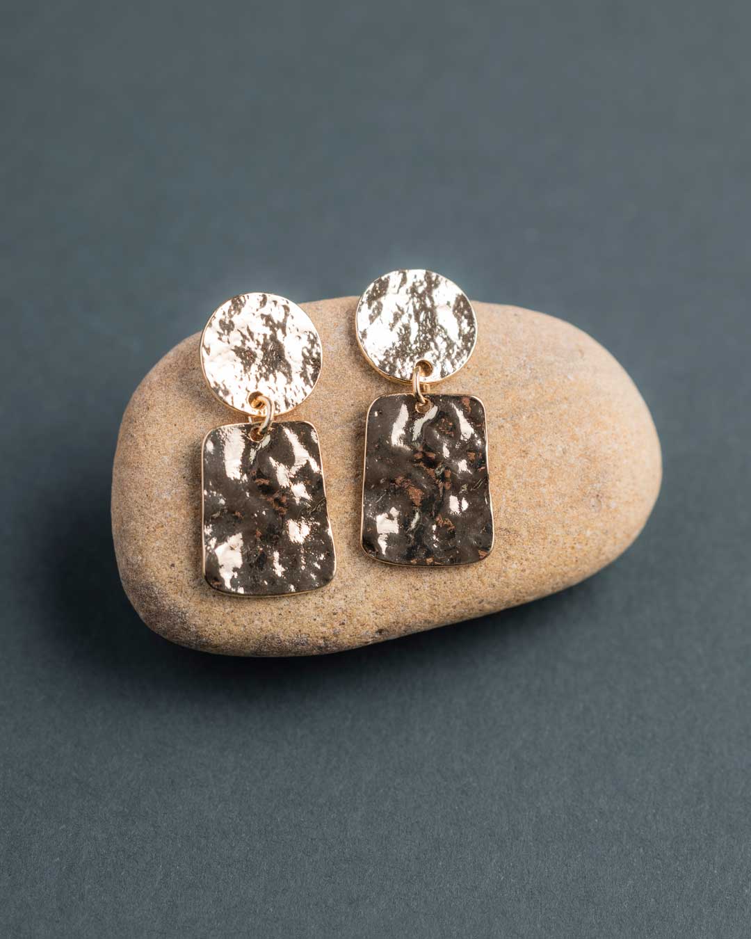 Elevate your look with these unique gold hammered stud drop earrings. Crafted with an ethnic feel, their lightweight design makes them suitable for both everyday wear and special occasions.
