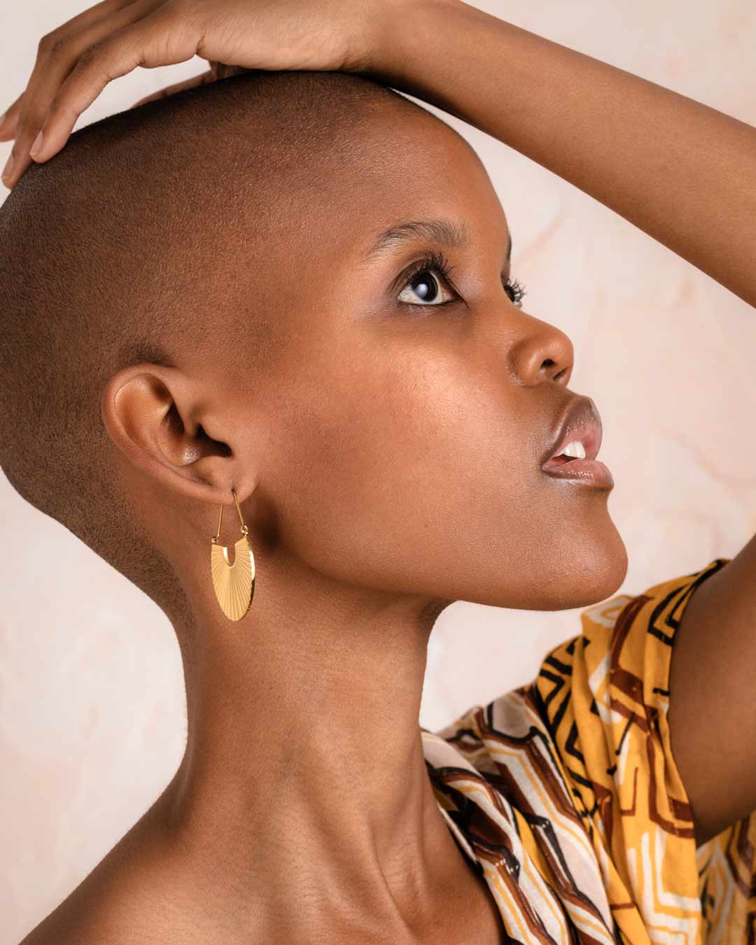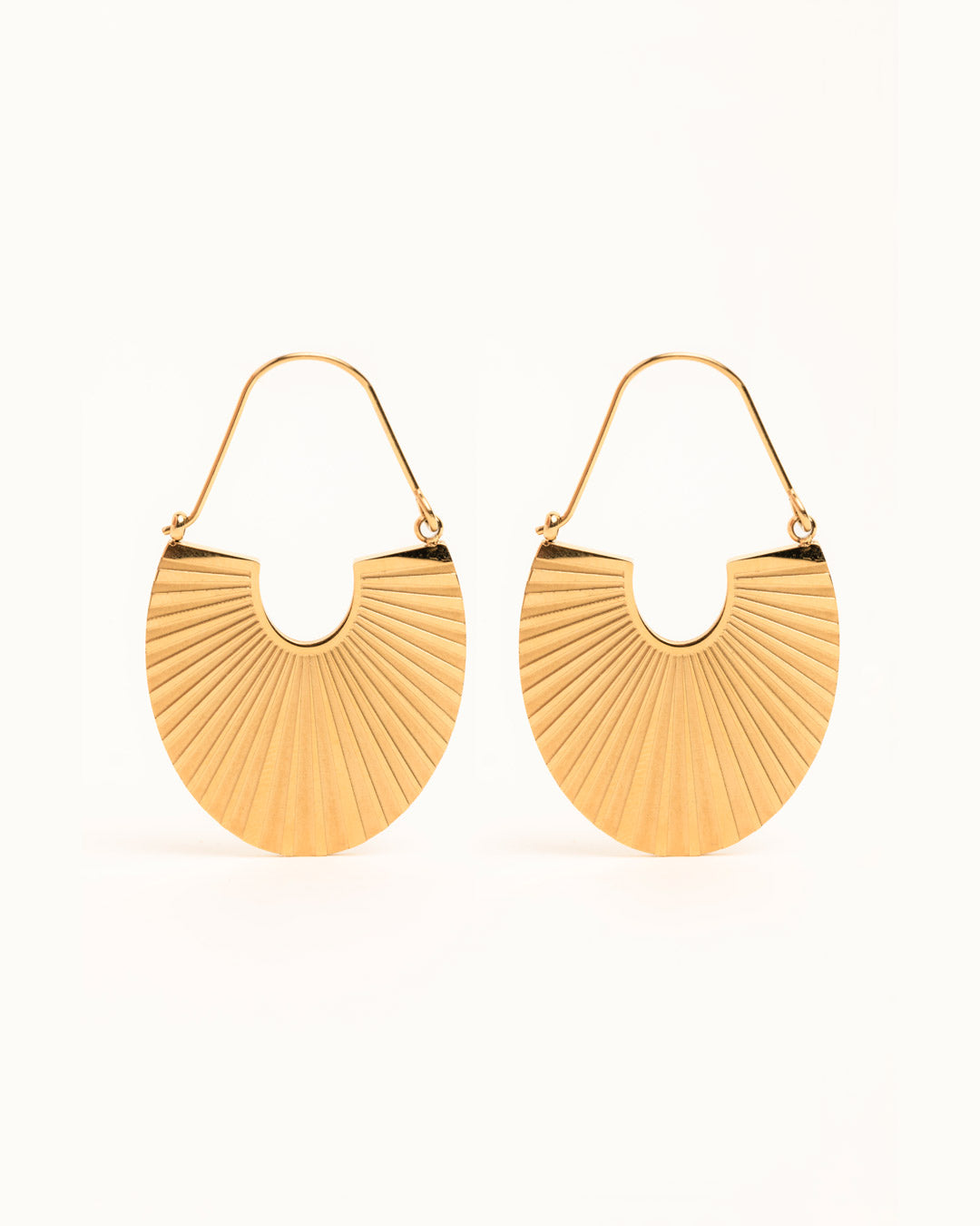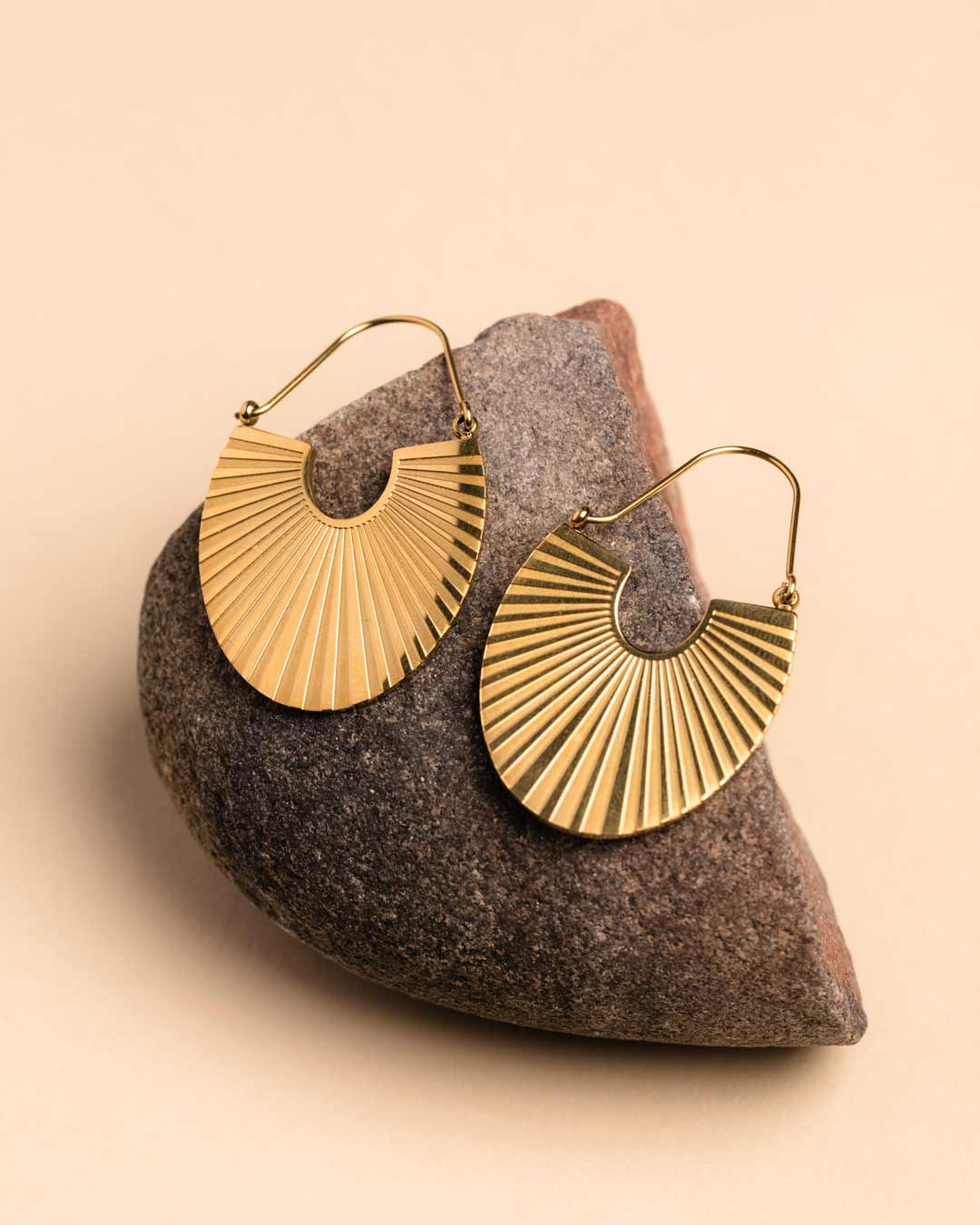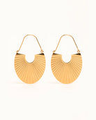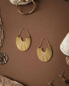 Enjoy a glimmer of sunshine every day with these stylish sunray hoop earrings! They offer a unique, eye-catching design sure to compliment any outfit. Get ready to shine!