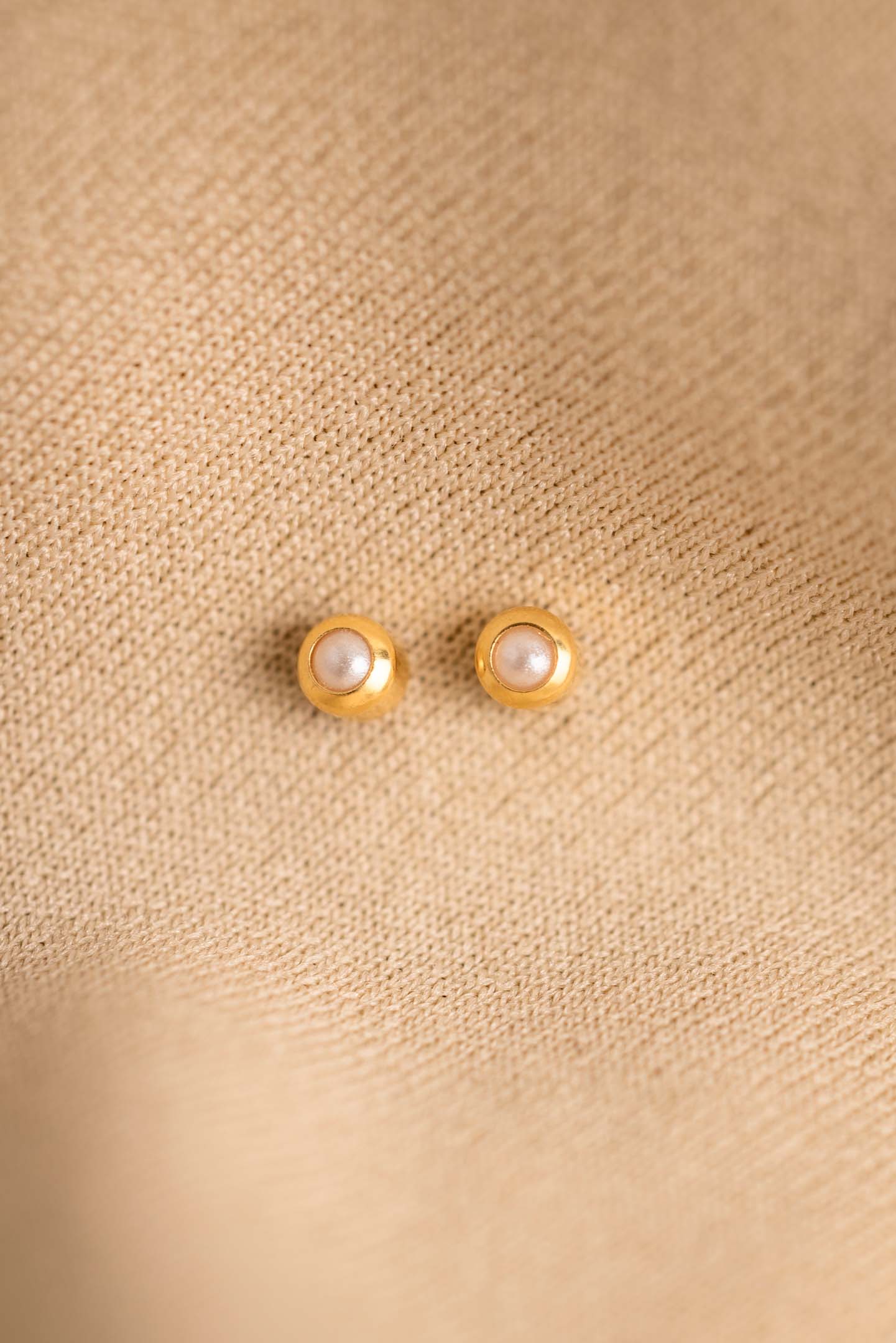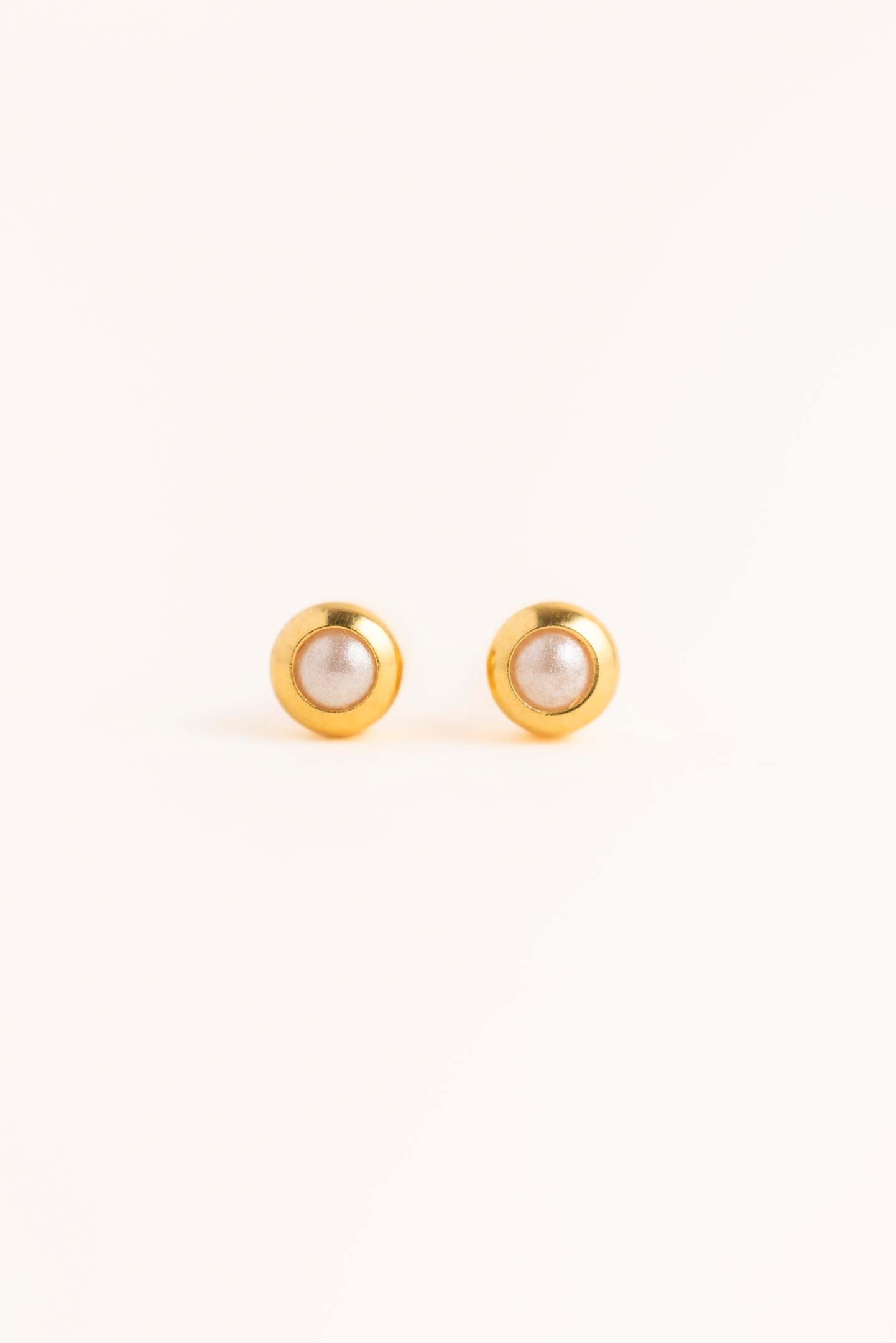 Subtle yet classic 3mm pearl set in a 24k gold plated cabochon.