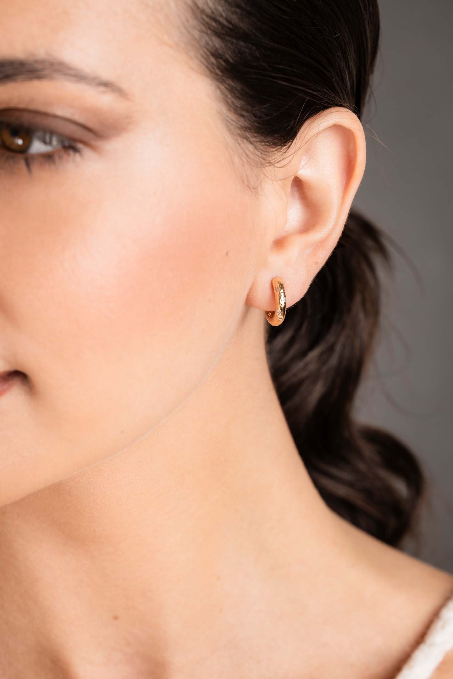 18ct Gold Plated Vermeil Crystal Inlay Huggie Earrings