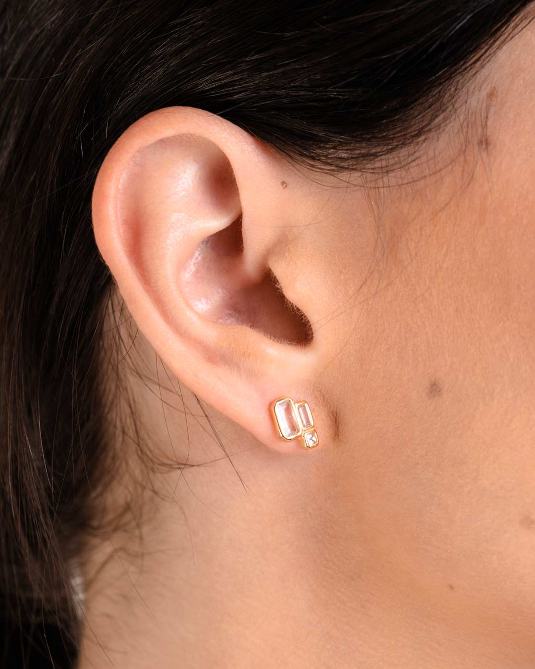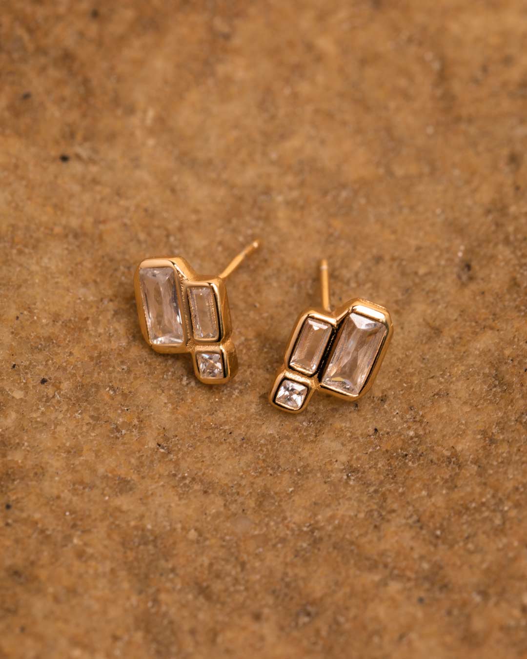 925 Silver 18ct Gold Plated & Flawless Clear Crystal Asymmetric Stud Earrings