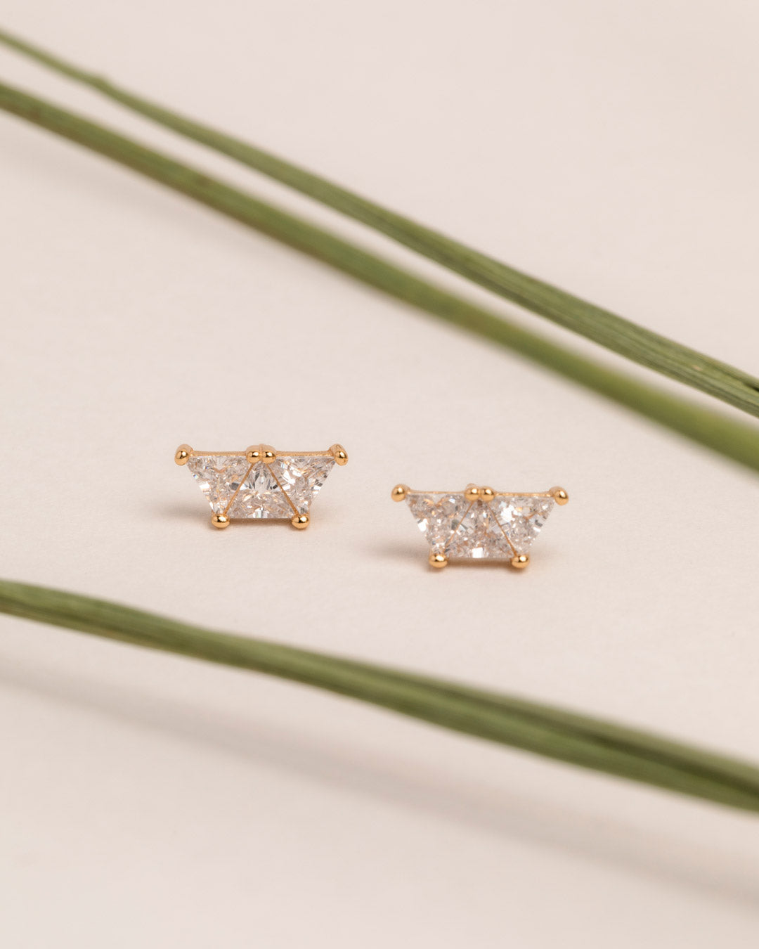 925 Silver 18ct Gold Plated & Flawless Clear Crystal Kaleidoscope Stud Earrings