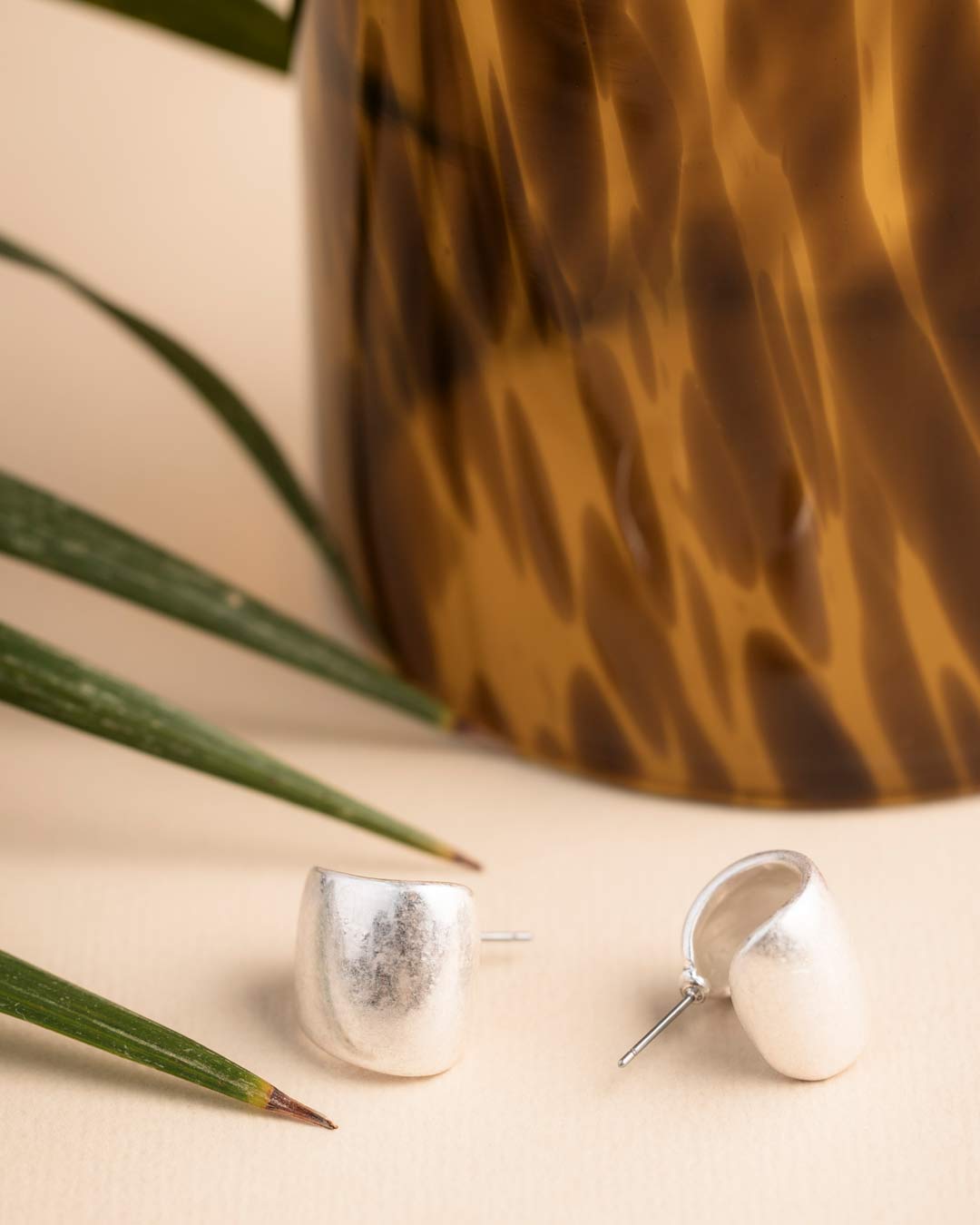 Silver Curved Stud Earrings